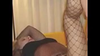 A gorgeous blonde with an anal sex and blowjob wearing high heels and fishnet stockings