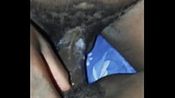 adoring a close-up of a hairy pussy. poured cum into her hair.