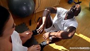 In the gym, Sex Crazed Fitness Instructor Jasmine Jae receives a scolding from the BBC about a new client.