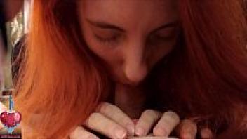 Adorable redhead female with a flawless ass point of view, blowjob, and riding cowgirl