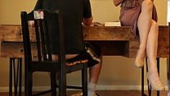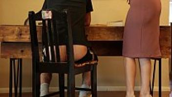 He is allowed to love her hairy pussy by his French amateur stepmother.