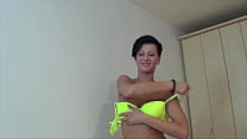 An amateur anal casting in which a petite Latina 18-year-old ass mouths a cumshot