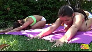 As her lesbian companion nibbles her moist, hairy pussy, the adorable brunette lets out a babe-like moan.