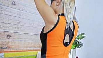 Cute Little Sporty Babe Flaunting Her Full Figure and Shaved Lips