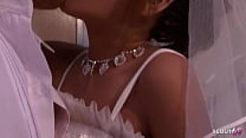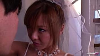 Before the soapy slide orgasm in the uncensored JAV following the wedding, the Japanese teen bride gives a blowjob.