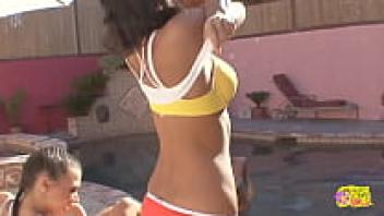 An adorable couple exchange between the redhead with the pink pussy and the brunette with the hairy pussy results from a game between friends.
