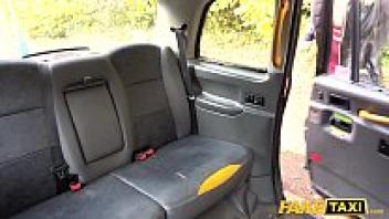 A sexy Mexican woman gets sperm on her glasses in a fake taxi.
