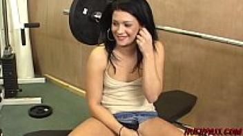 Before riding a massive cock in the gym, rookie Gia Givanna teases