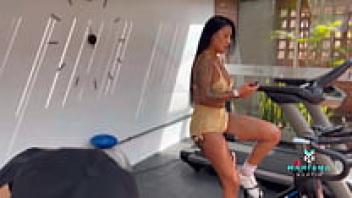 Mariana Martix can't get enough of her neighbour Logan Salamanca's enormous cock, which she can see in his workout clothes. Footjob
