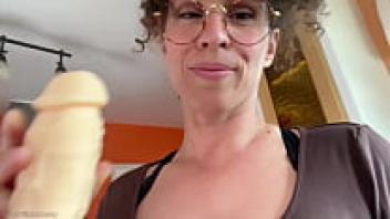 In a mature sex video, an amateur grandmother rides a long, large black dick.