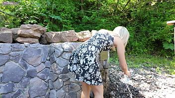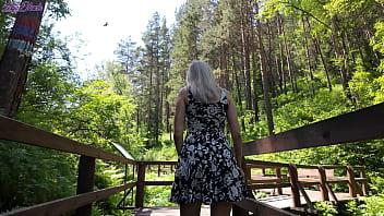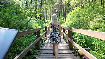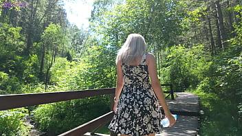 A sweet girl had an orgasm while using a remote-controlled vibrator in a park.