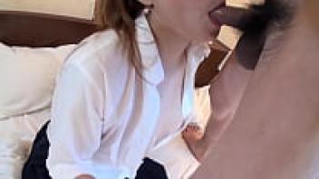 This adorable Japanese student is in love without a condom.