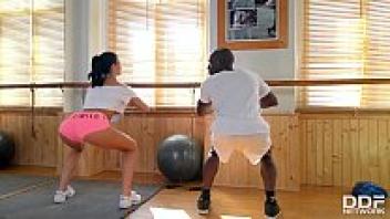 Jasmine Jae, a sexy gym instructor, rides a massive black cock with her asshole.