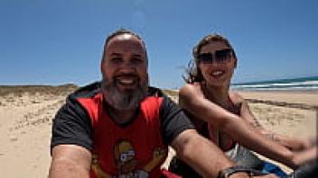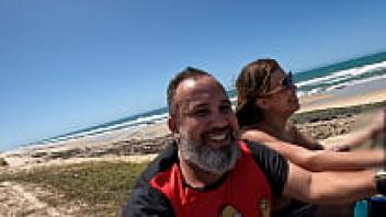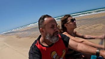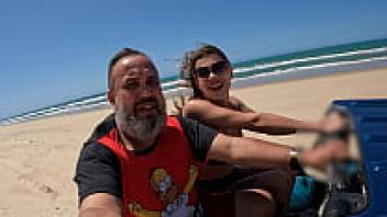 Ma Santos on the beach in Futuro Ceará with Ted's ride in the buggy