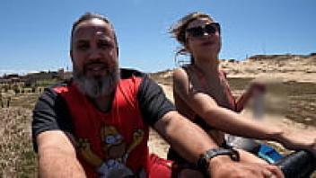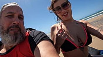 In Florida, a gorgeous Latina spreads pussy on the beach.