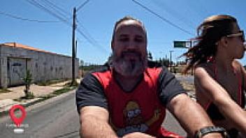 Elisa Santos gets ironed in the middle of the road after becoming pregnant during the trip.