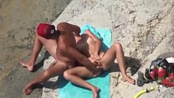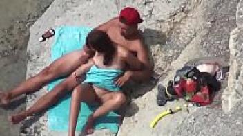 Amateur beach sex with a girlfriend in public