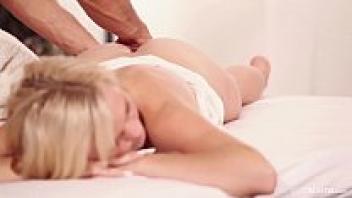 Bella, a natural blonde, has orgasms following a massage.