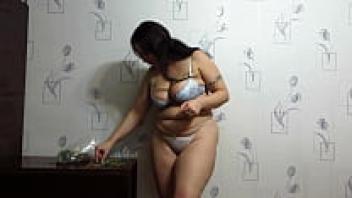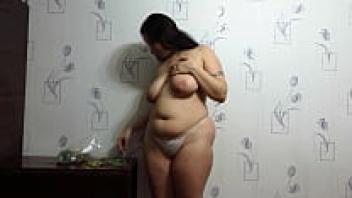 Bondage and BDSM for a fat milf with large tits and nipple piercings. Rubber band fetish manufactured at home.