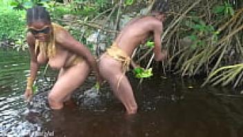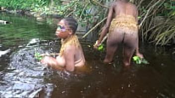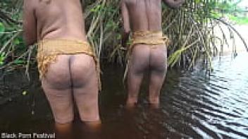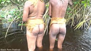 The son's village chief cock is being enjoyed by two African tribe hoes.
