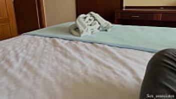A stepson and a gorgeous stepmother share the hotel bed and her ass.