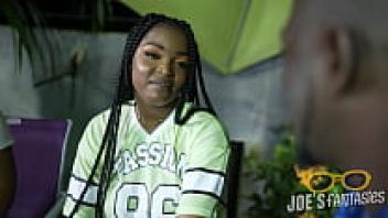 Jordyn Falls, a new black pornstar, sucks a large black dick in ebony porn.