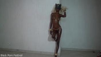 Because she had forgotten her business costume, the African secretary undressed in front of her employer, showcasing her attractively thin figure.