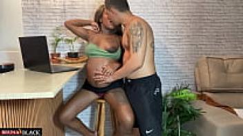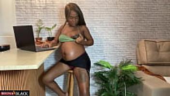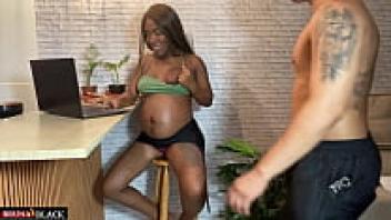 The pregnant woman stops cleaning to make love to her naughty husband, who enjoys milking her tight pussy, because she has fire in it and is yearning to get it on.