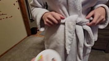 Stepmother removed the condom and revealed a full sperm pussy.