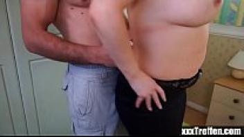 Because she is horny, a German fat mother wearing glasses picks up a young man.