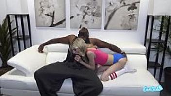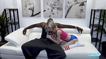 Piper Perri, a petite blonde teen, is live on CamSoda sucking a large black cock.