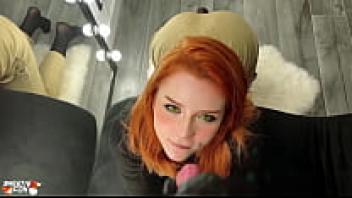 I GOT A MASSIVE NUTTY FACIAL FROM MY BOSS! Prone Deepthroat Blowjob with Feet for Blue Lipstick Glasses!