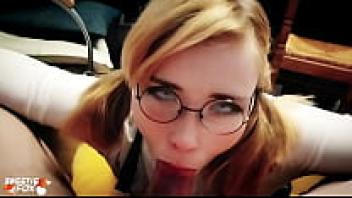 Deep-sucking Big Cock with Honey Teenager's Cum in Mouth