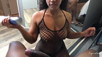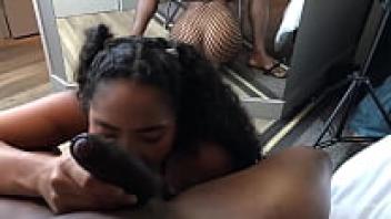 Big black cock being sucked by a brunette milf