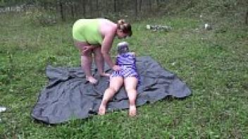Fisting hard for a hairy pussy. Big-ass lesbians adore outdoor orgasms and affection. Fetish.