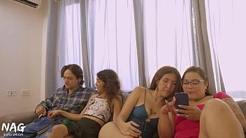 brother freely uses his stepsisters and proposes to his stepmother to join!