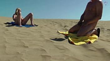 Oh my god! While we were masturbating on a nudist beach, a voyeur caught us having sex.
