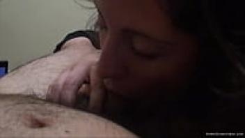 Adorable girlfriend has a hairy pussy after sucking cock.