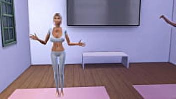 Teen tied after a yoga session at the gym, unable to move and experiencing several vibrator orgasms