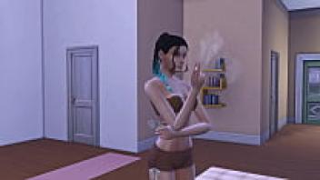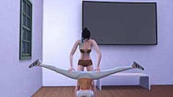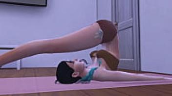 A petite, wealthy, and innocent teen wearing glasses enjoys having her tight pussy deeply stretched by a yoga instructor.
