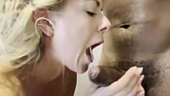 Kylee Nicole, a pretty blonde, engages in interracial oral sex with an uncut black man.