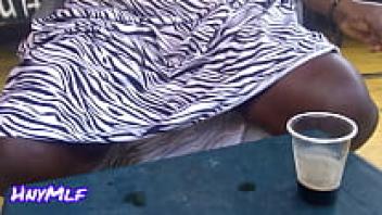 #2 MissCreamy's exhibitionist wife, an outdoor amateur Milf Handjob Big Cock, in front of a voyeur with cum on Nudity Beach