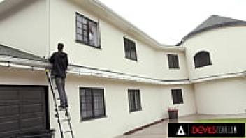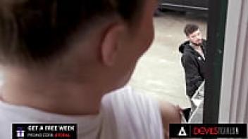 DEVILS TGIRLS: Beautiful Trans Girls Tori Easton used her large cock to beat a man's asshole.