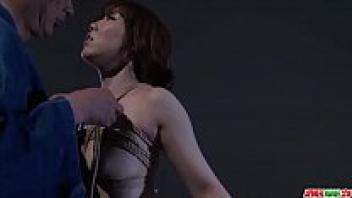 Mika Shindo, an Asian bondage brunette, with a group of men.