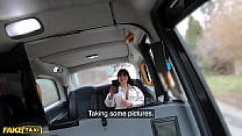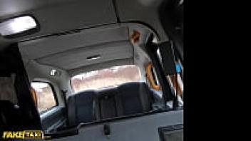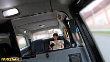 Fake taxi: a silly, naive Italian woman with large, luscious tits wearing glasses