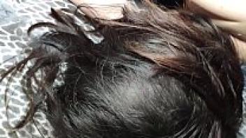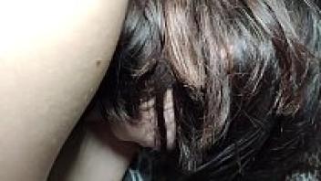Sitting on your face, the hot babe masturbates your hairy, wet pussy.