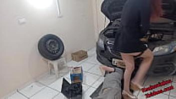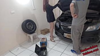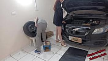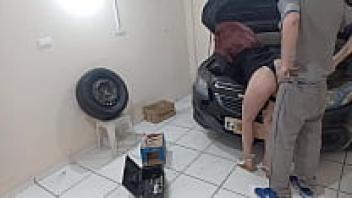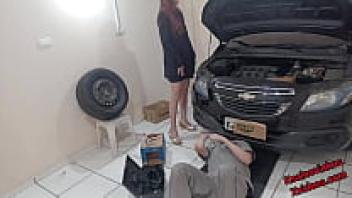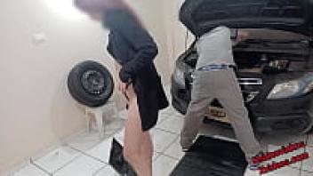 The technician is teased by a lustful boss! In the workshop, they were in love.
