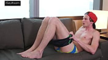 Strong Latino gay man bouncing vigorously on uncooked jock cock