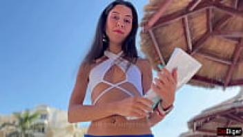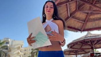 Sex between a gorgeous couple on a public beach