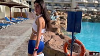 The white blonde started beating with a lot of sweat and roughness by sunbathing in front of his BBC.
